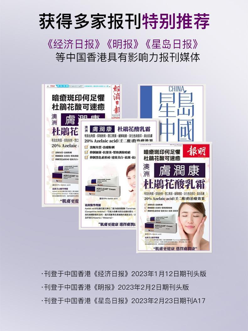 澳洲进口祛痘黑科技肤润康澳洲肤润康20%高浓度壬二酸乳霜淡化痘印控油温和不刺激工艺